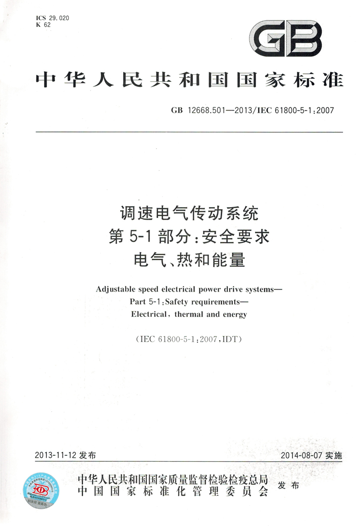 本部分標準由中國電器工業(yè)協(xié)會提出,全國電力電子學標準化技術委員會歸口,天津電氣傳動設計研究所有限公司等單位參加起草。該標準等同IEC61800 5 2007。2013年11月12日由國家質(zhì)量監(jiān)督檢驗檢疫總局和國家標準化管理委員會發(fā)布。