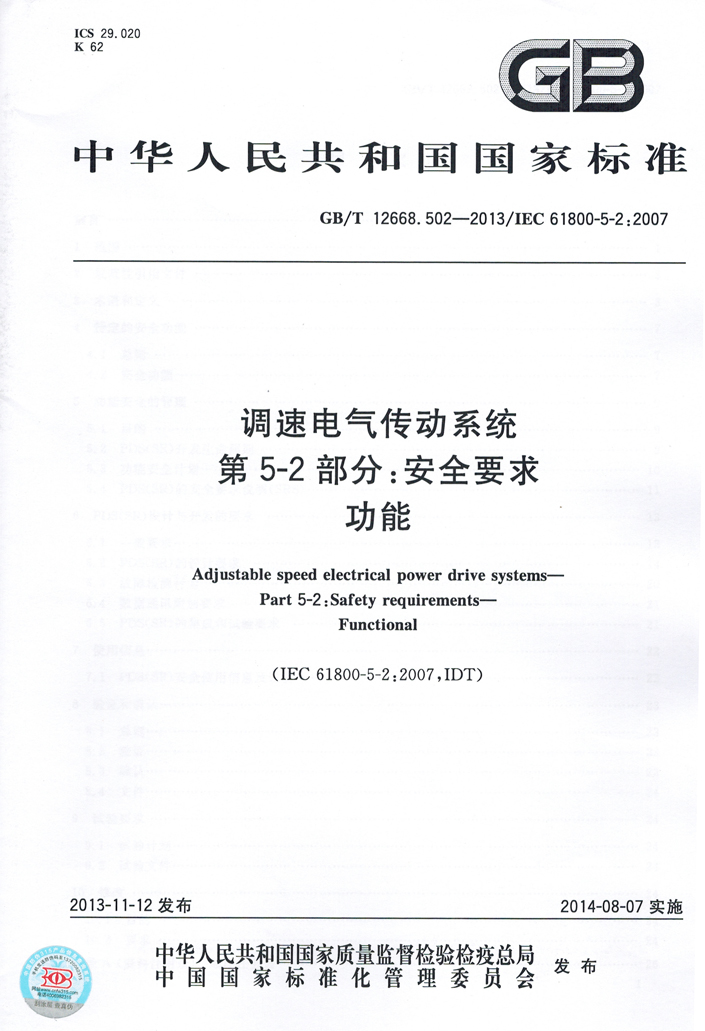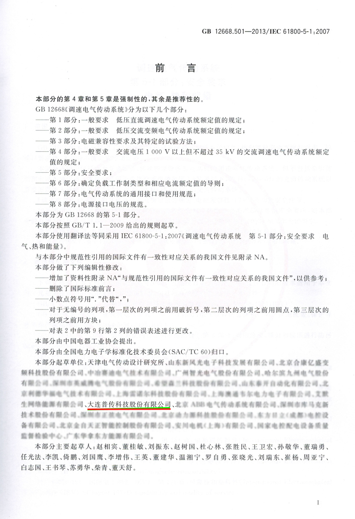 2014年8月7日,大連普傳科技股份有限公司參加起草的《調(diào)速電氣傳動系統(tǒng)》系列第五部分“安全”強制性兩個標準正式開始實施。