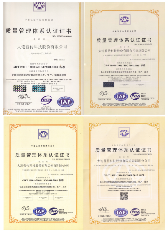 在執(zhí)行 ISO 9002 的要求下, 我們有三個(gè)主要試驗(yàn)依據(jù)即:①國(guó)際標(biāo)準(zhǔn)IEC 1000 EN 50081 、EN 50082 ②國(guó)家標(biāo)準(zhǔn):GB 12668 交流電動(dòng)機(jī)半導(dǎo)體變頻調(diào)速器調(diào)速裝置總技術(shù)條件、GB 3797《電控設(shè)備 第二部分, 裝有電子器件的電控設(shè)備》 ;③普傳標(biāo)準(zhǔn):普傳對(duì)于產(chǎn)品的試驗(yàn)有特殊而獨(dú)到的見(jiàn)解, 有維修世界各種品牌的經(jīng)驗(yàn), 作為設(shè)計(jì)開(kāi)發(fā)的依據(jù)并作為產(chǎn)品檢驗(yàn)標(biāo)準(zhǔn)。通過(guò)供應(yīng)商資格確認(rèn), 進(jìn)料檢驗(yàn)( IQC) , 過(guò)程檢驗(yàn)( PQ C) , 最終檢驗(yàn)( F QC) , 并執(zhí)行客戶(hù)確認(rèn)的程序, 使得故障率大為降低。