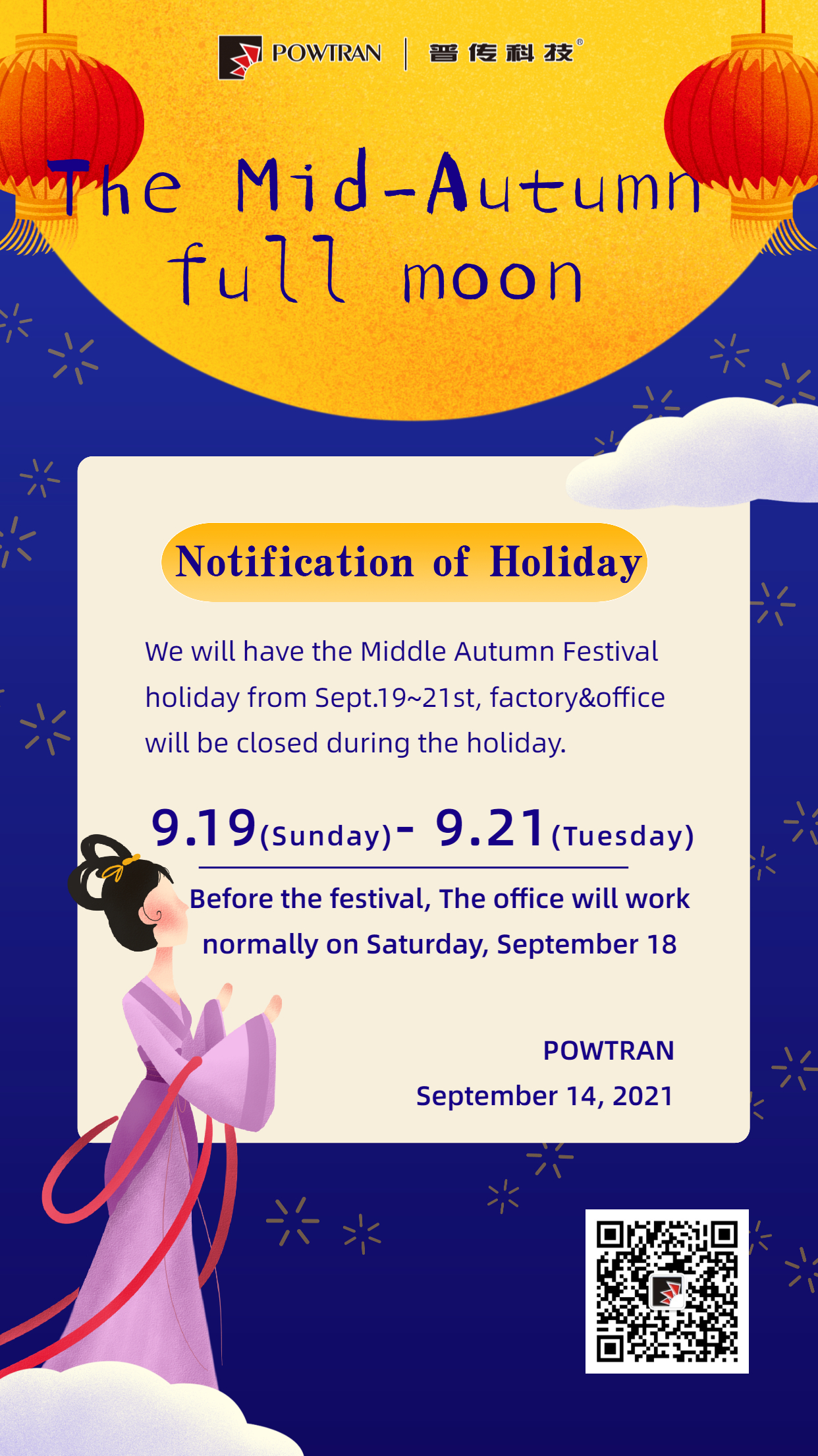 Powtran Technology 2021 Mid-Autumn Festival holiday notice