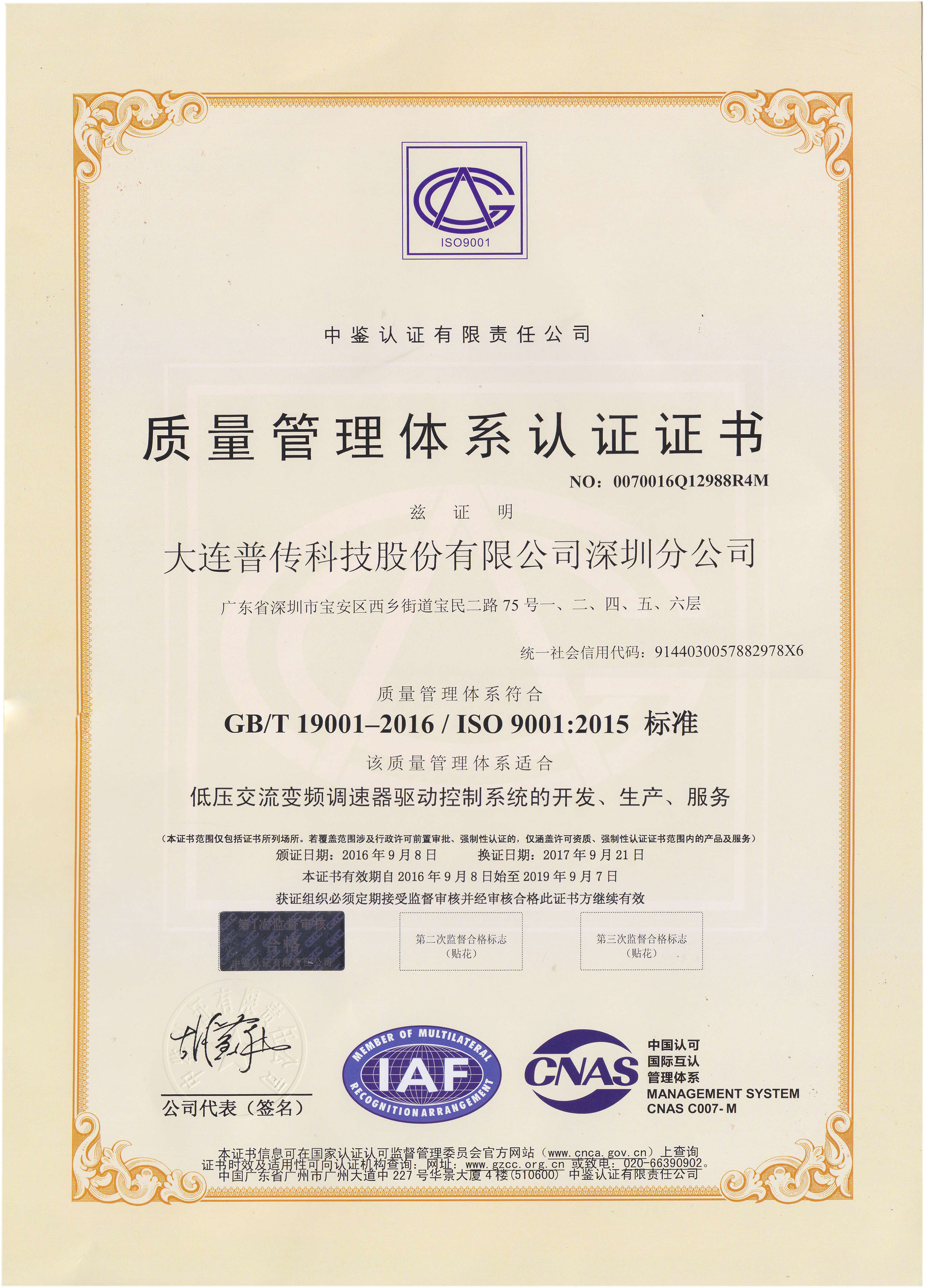 ◎1995年 普傳科技作為專業(yè)變頻器生產(chǎn)廠家在國(guó)內(nèi)首家通過(guò)ISO9002:1994質(zhì)量體系認(rèn)證