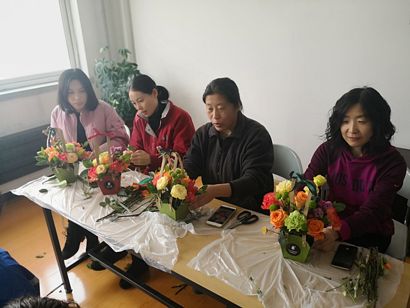 3.8當(dāng)天中午,大連總部所有女生集體出現(xiàn)在公司活動室,一場期待已久的----插花藝術(shù)沙龍活動正在進(jìn)行當(dāng)中。
